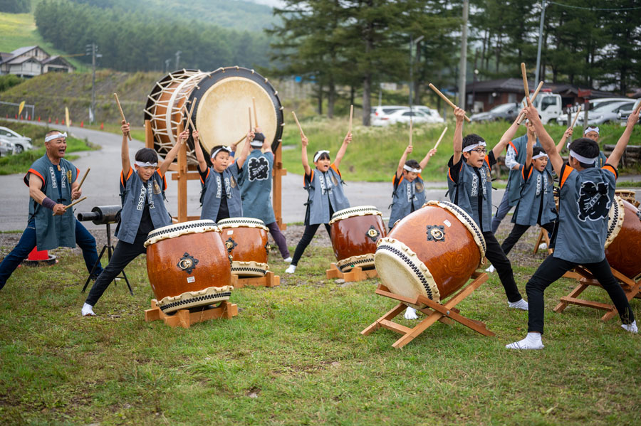 レース中、またフィニッシュエリアでは和太鼓の壮大な演奏があり、選手を温かく迎えてくれた。レース後には、名産のぶどう他、トウモロコシやソフトクリーム、豚汁が振舞われ、疲れた身体を癒すおもてなしに、参加者の満足度も高かったようだ。